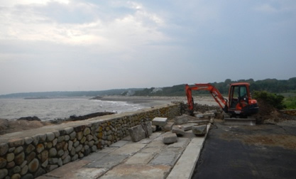 Seawall with a granite apron under construction